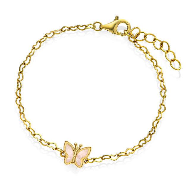 Prins & Prinsesse, Armbånd til barn i 925 forgylt sølv og sommerfugl