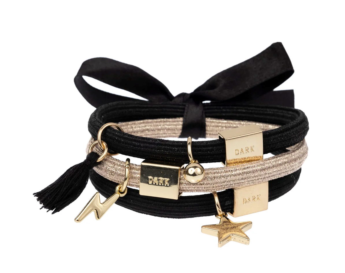 Dark Department elastiske hårstrikk i sort / gull med gullfargede charms