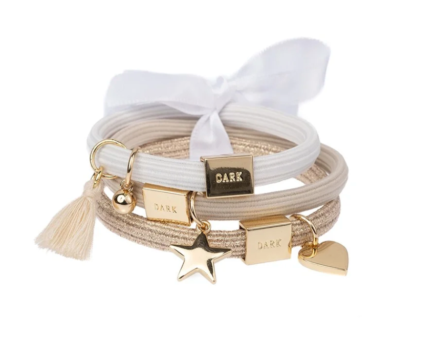 Dark Department hårstrikk 3 pk i hvit / gull.