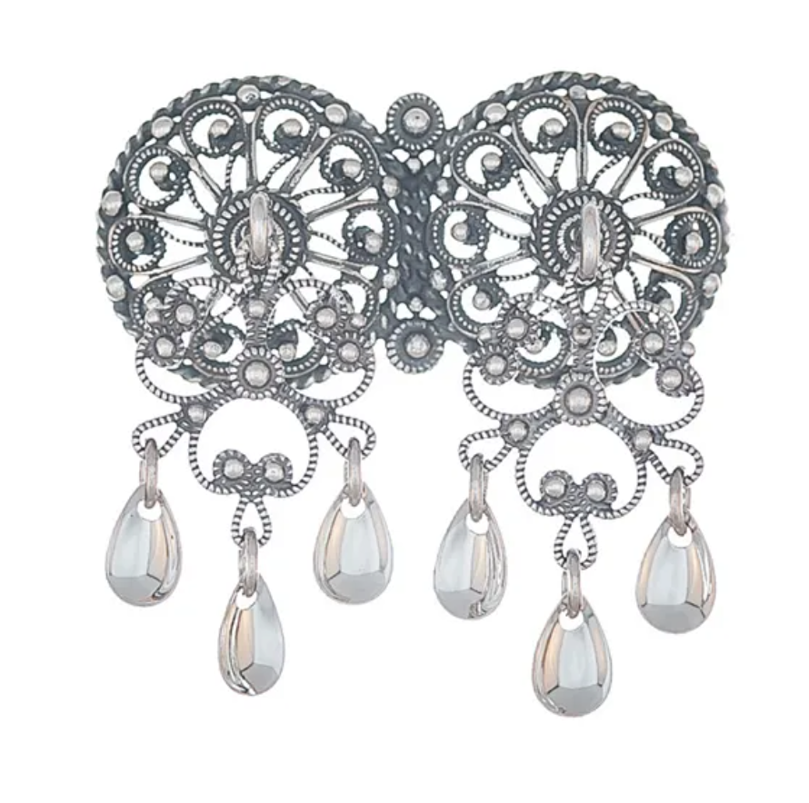 Halsknapp til grafferbunad i oksidert sølv, kort type.