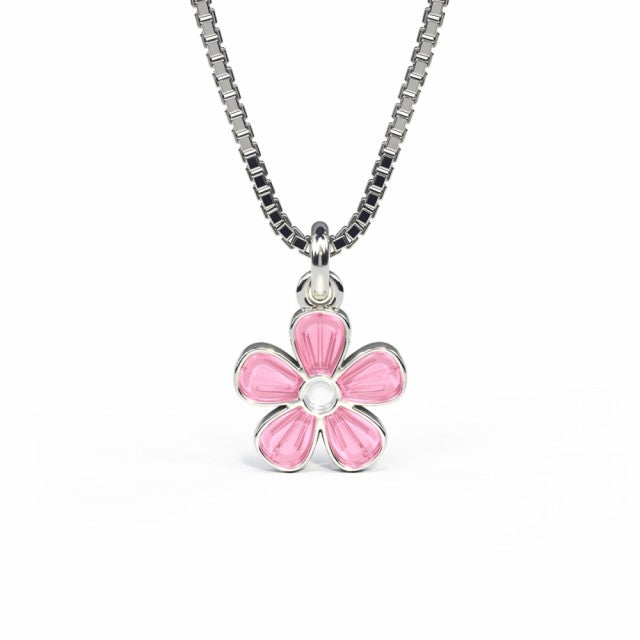 HALSKJEDE I SØLV - ROSA BLOMST