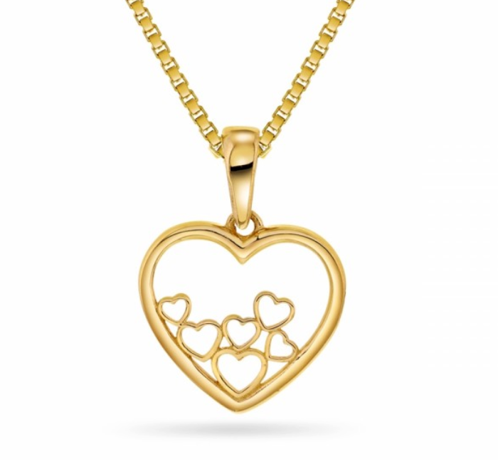 Hjerteanheng i 14 karat gull med sølvforgylt kjede i 42 cm.