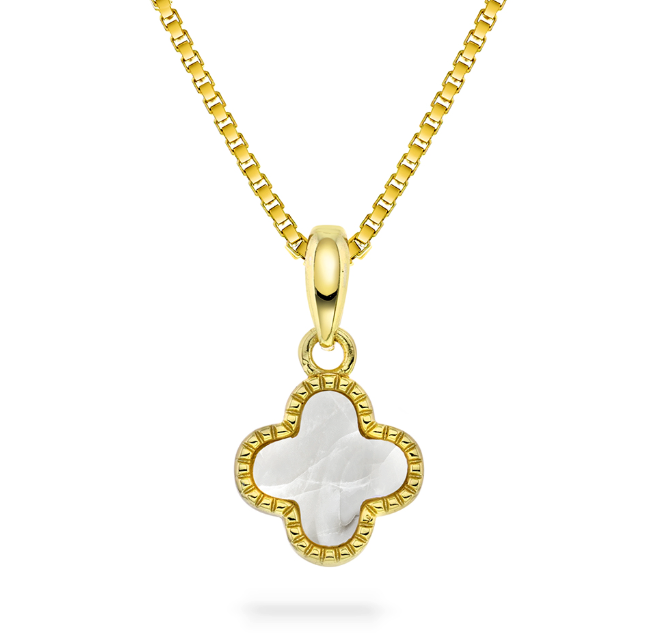 Pan Jewelry, Kløver smykke i forgylt 925 sølv med hvit perlemor