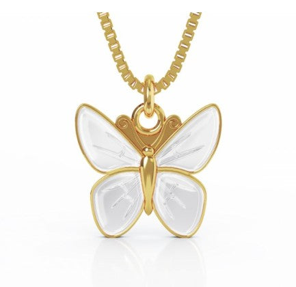 Liv anheng, hvit emalje sommerfugl i forgylt sølv.