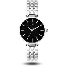 Denne klokken har en lenke i sølv sammen med en klassisk sort urskive, her har du en moderne, men samtidlig tidløs klokke som løfter hvert antrekk.