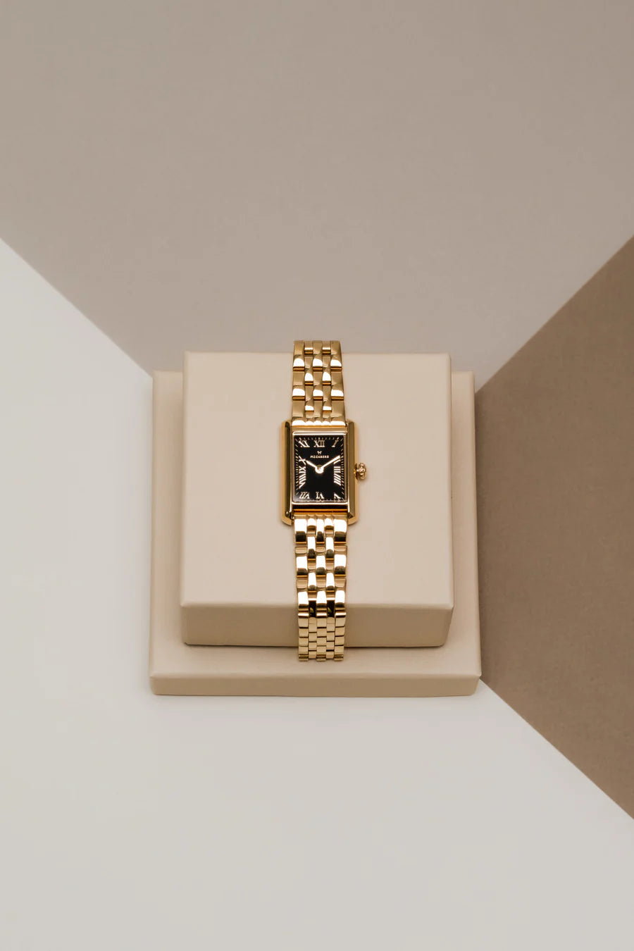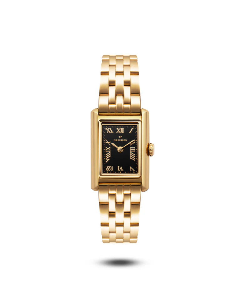 Mockberg Timeless er en elegant klokke fra Mockberg. Denne modellen har gullfarget stållenke med en lekker svart urskive. Skiven måler 18 x 22mm og klokken er vanntett til 3 ATM.