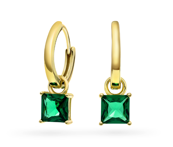 Pan Jewelry, Øreringer i forgylt sølv med grønn zirkonia