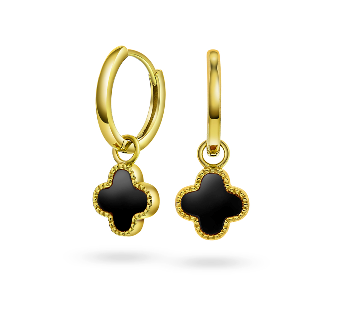 Pan Jewelry, Kløver øreringer i 925 forgylt sølv med sort kløver