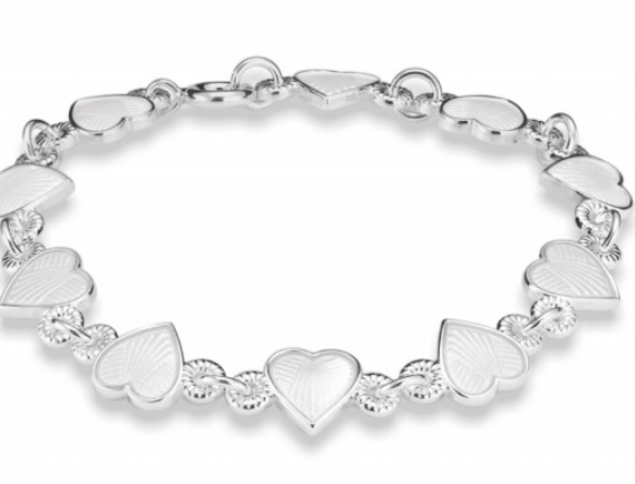Sølvarmbånd med hvite emaljehjerter til barn.
