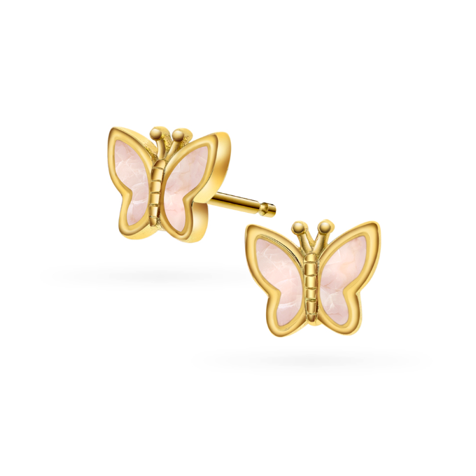 Prins & Prinsesse, Øredobber til barn i 925 forgylt sølv med perlemor og sommerfugl