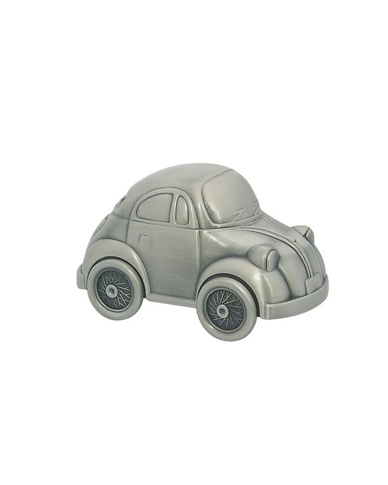 Fortinnet sparebøsse formen som en gammel folkevogn. Produktet kan graveres.